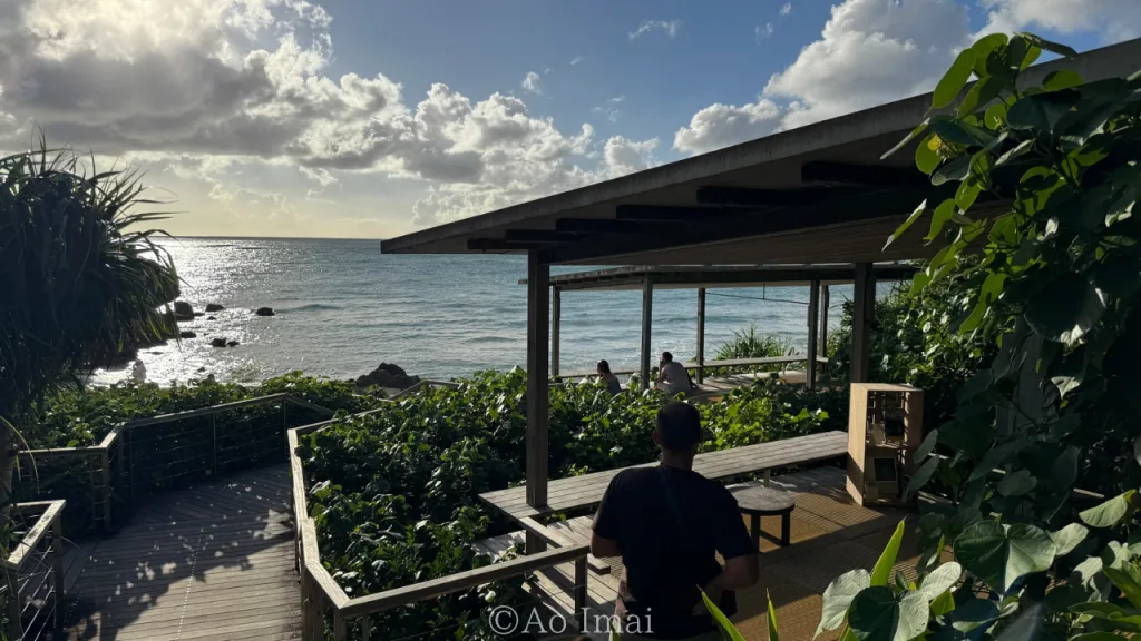 カフェから海岸に降りることができ、実際に砂浜を歩いて海を見ることができました。これはバンタカフェの大きな魅力の一つです。