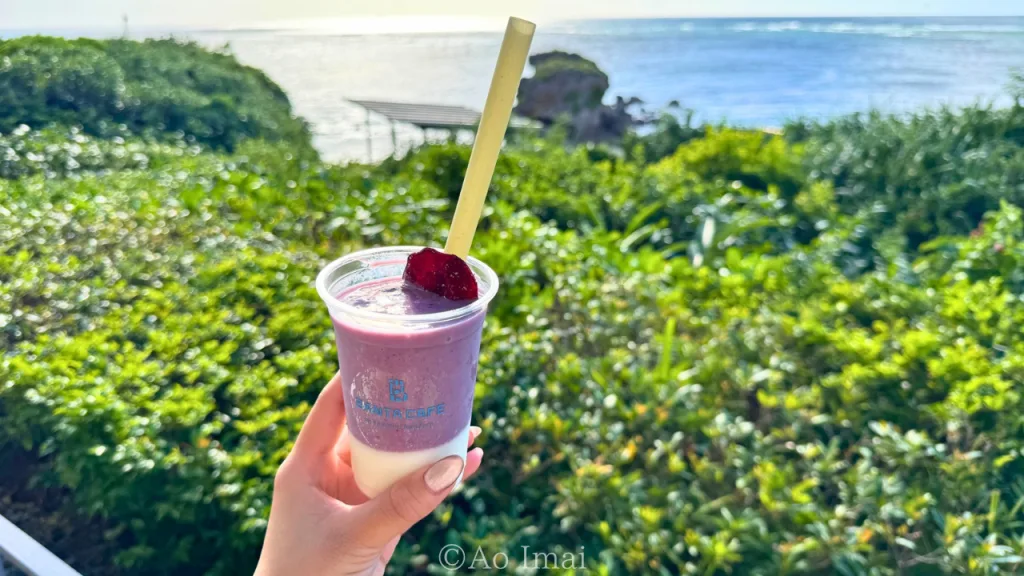 鮮やかな紫色の紅いもシェイク。見た目から沖縄らしさが伝わってきます。シェイクだけでなく牛乳プリンのような食感と甘さがあり、濃厚で美味しかったです。紅いもの風味がしっかり感じられ、デザートとして大満足でした。