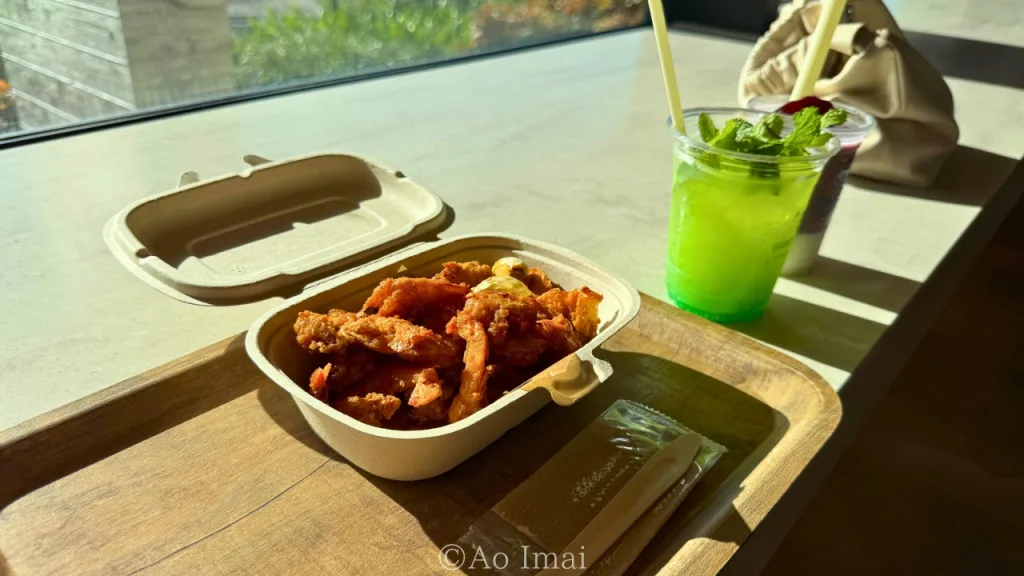 えびには衣がついていて、揚げ物のような感じでした。通常のガーリックシュリンプとは少し違う調理法で、えびはそこまで大きくなかったです。普通のガーリックシュリンプだと思って注文すると少し違うと感じるかもしれませんと思うでしょう。
