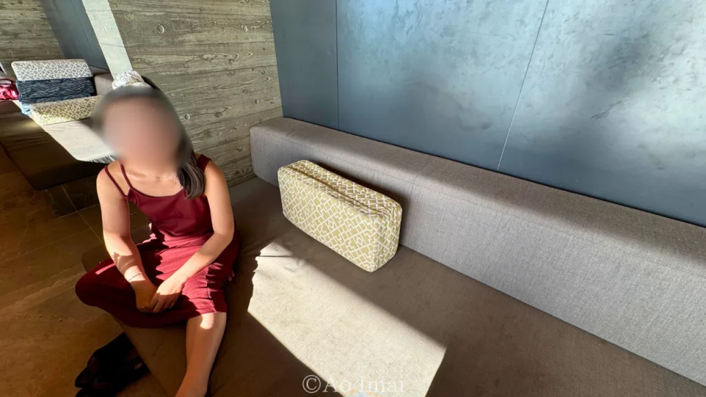 人気スポットのため、観光客で賑わっています。今回の訪問でも、近くに中国人観光客のグループがいて、少し騒がしく感じました。ごろごろラウンジはしきりがないソファで、日本人同士だと何となく開けて座りますが、海外の人は気にせず座ることもあります。
