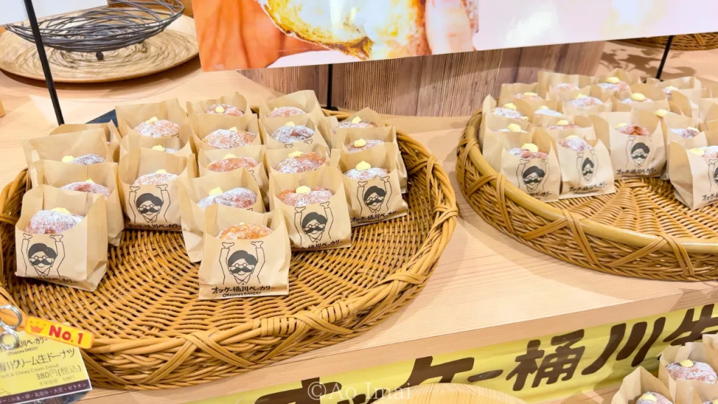 このコーナーの看板メニューが「オッケー桶川クリーム生ドーナツ(220円〜)」。作りたてが出る時間には10〜20人の行列ができることも珍しくないほどの人気商品です。