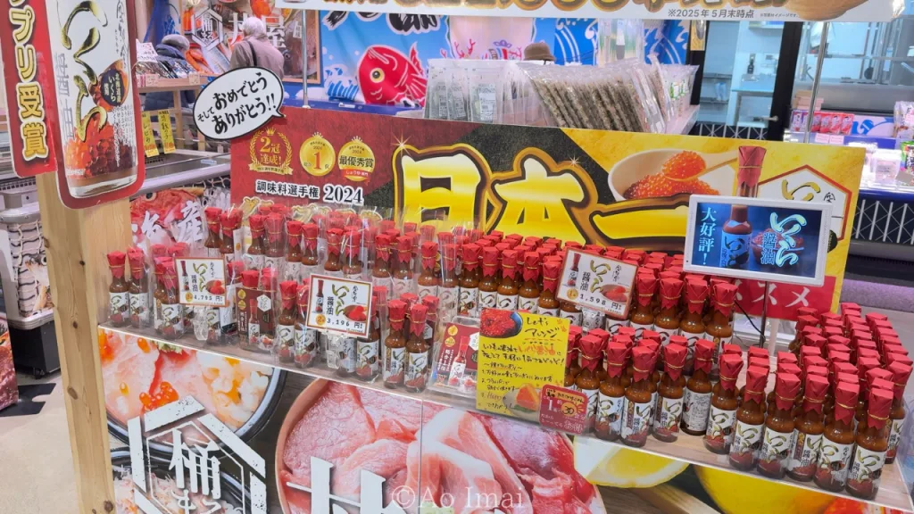 入ってすぐにいただいたのが「いくら醤油」という調味料です。出荷本数321,000本を突破したという大人気商品で、北海道産のイクラを醤油漬けにしてペースト状にしたものみたいです。